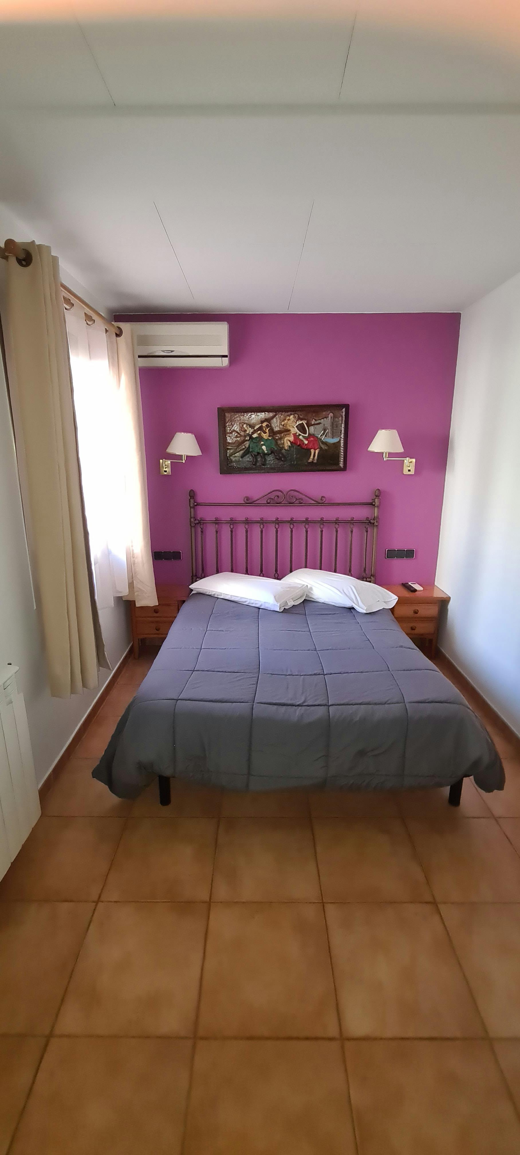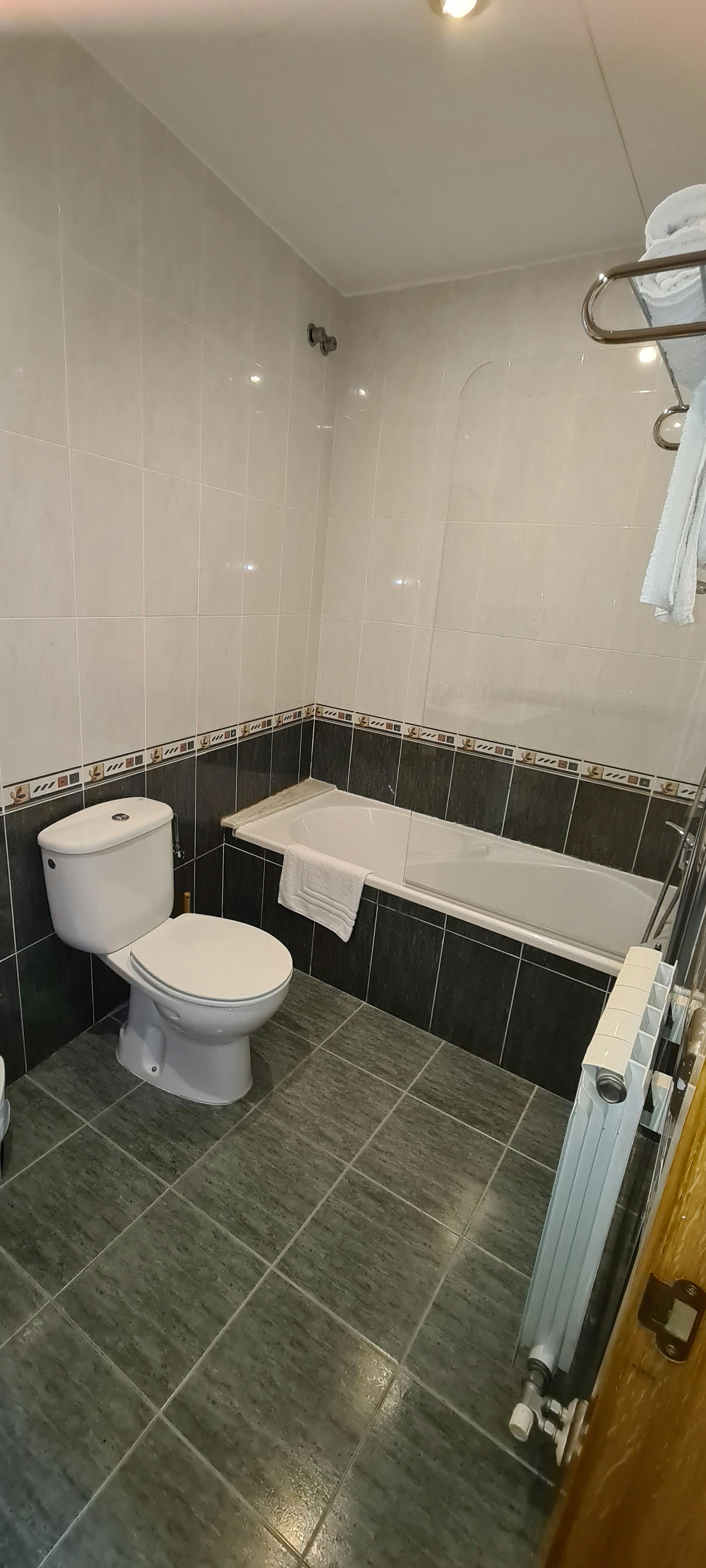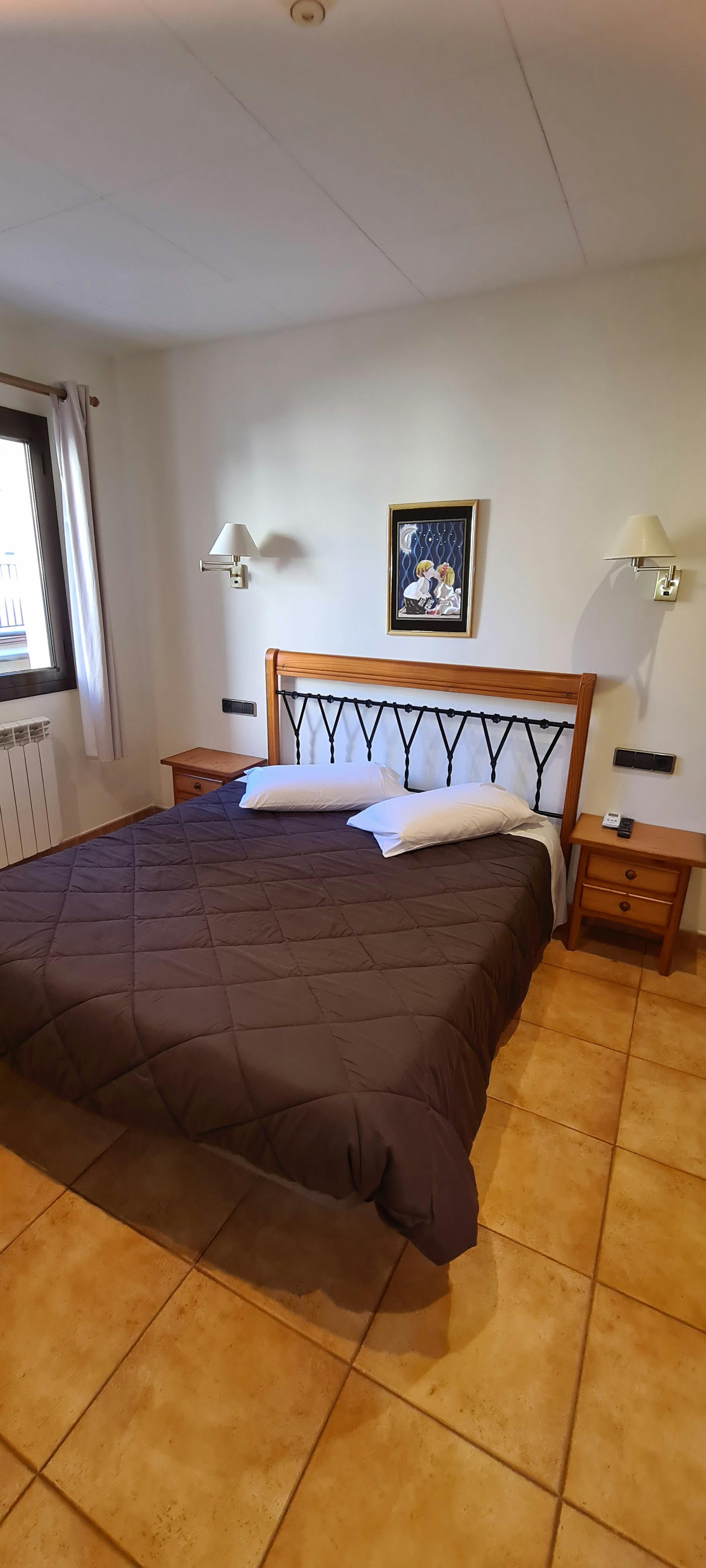Room with double bed with full bathroom, bathtub and hair dryer, TV, air conditioning, heating, safe.